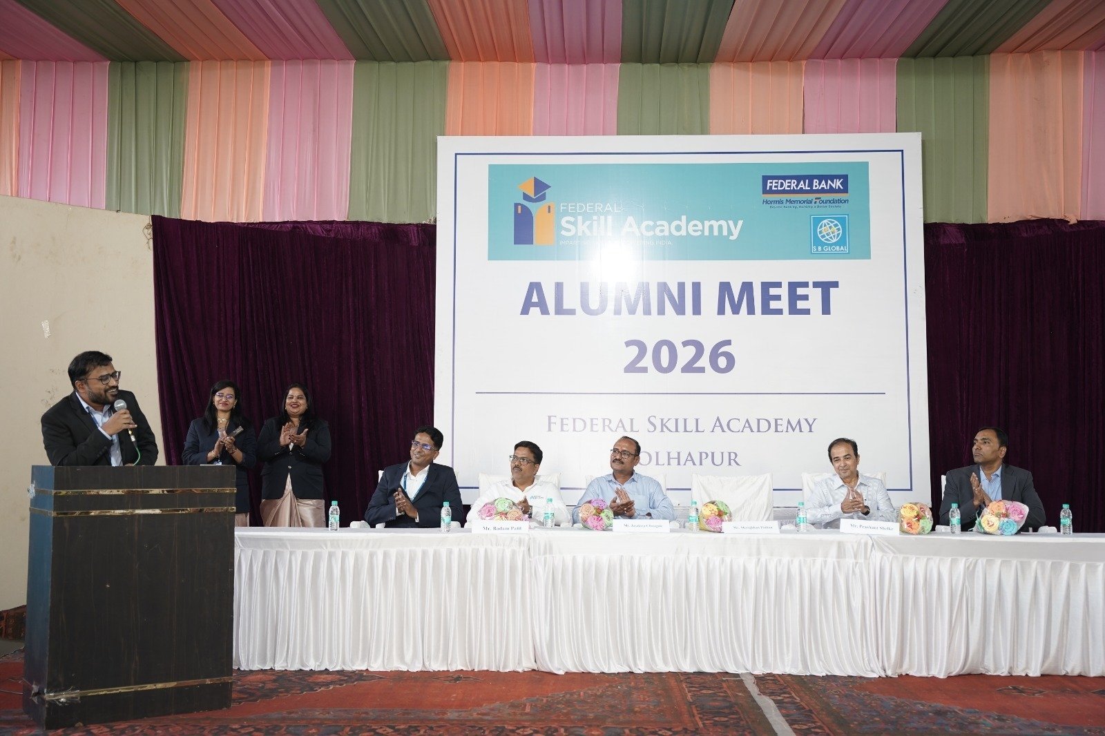 कोल्हापूर, भारत | 2 फेब्रुवारी 2026 – फेडरल बँकेच्या सीएसआर शाखा असलेल्या फेडरल बँक हॉरमिस मेमोरियल फाउंडेशन अंतर्गत चालवली जाणारी प्रमुख कौशल्य विकास योजना फेडरल स्किल ऍकॅडमी (एफएसए), कोल्हापूरने नागला पार्क येथील बालाजी गार्डन हॉलमध्ये आपली पहिली ऍल्युमिनी मीट (माजी विद्यार्थी मेळावा) यशस्वीरित्या आयोजित करून एक महत्त्वाचा टप्पा गाठला. या कार्यक्रमात 200 पेक्षा अधिक माजी विद्यार्थी, उद्योग क्षेत्रातील नेते आणि बँकिंग व्यावसायिक एकत्र आले होते.या कार्यक्रमात एफएसएच्या पदवीधर विद्यार्थ्यांच्या यशाचा गौरव करण्यात आला आणि रोजगारक्षमता वाढवणे आणि स्थानिक आर्थिक विकासाला चालना देणाऱ्या संरचित कौशल्य विकासाच्या वाढत्या प्रभावावर प्रकाश टाकण्यात आला. या कार्यक्रमाचे अध्यक्ष मेराजखान पठाण, डीव्हीपी आणि रिजनल हेड, फेडरल बँक, कोल्हापूर होते, तर प्रमुख पाहुणे म्हणून जयदीप चौगुले, चेअरमन, शिरोळी मॅन्युफॅक्चर्स असोसिएशन कोल्हापूर (एसएमएके) उपस्थित होते.